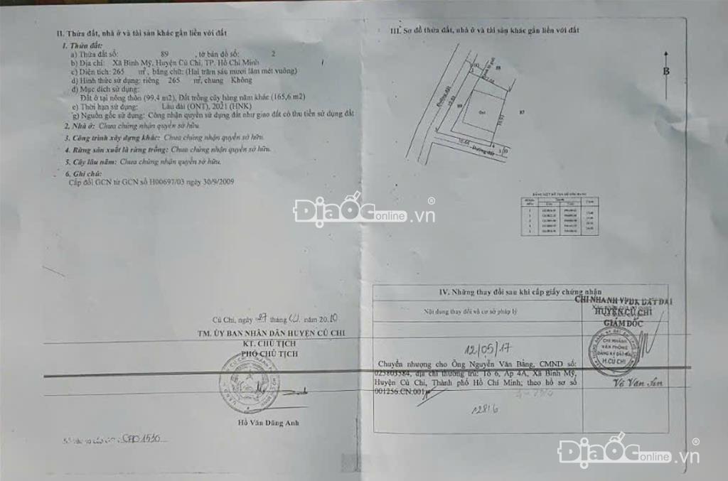 + Diện tích: 265m² vuông vức, đẹp. TC 100m2 , đất trồng cây 165m2